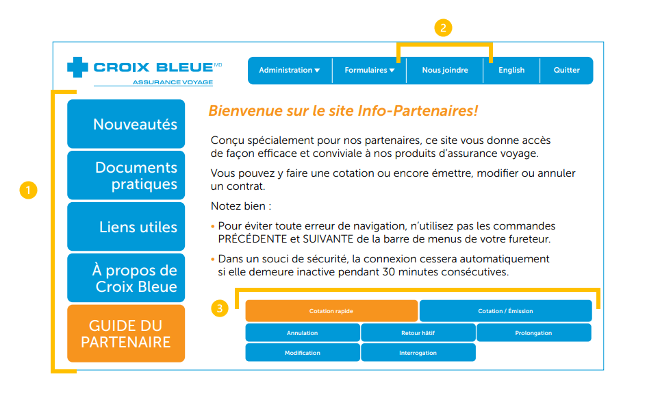C’est votre principal outil pour la plupart de vos activités liées à la vente des produits d’assurance voyage Croix Bleue.